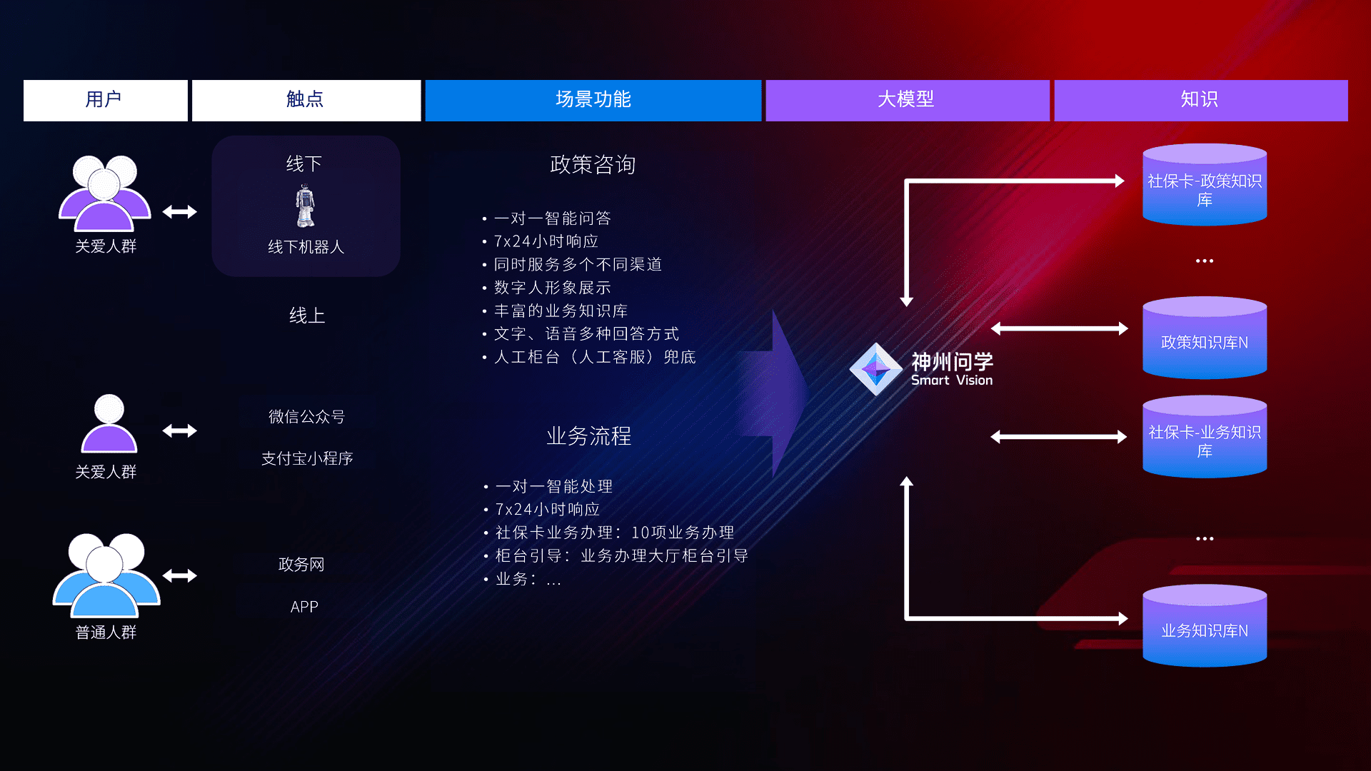 • 线上线下全覆盖:线上提供微信公众号、、、支付宝小程序、、政务网、、、app多种渠道,,与线下机器人形成完整服务体系。。。。