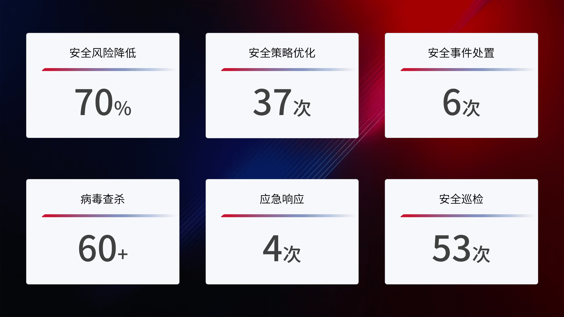 提供全面的安全事件报告体系,,,包括处置报告、、周报、、季度和年度总结,,结合持续监控,,帮助客户深入了解网络安全状况。。